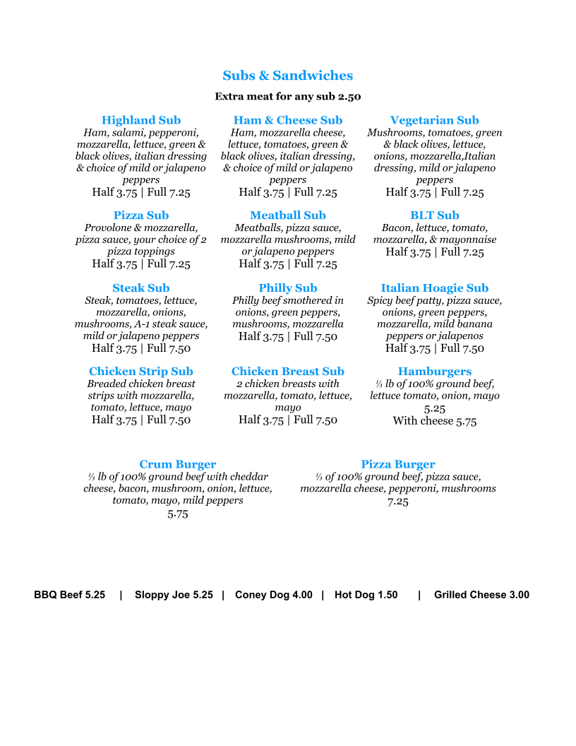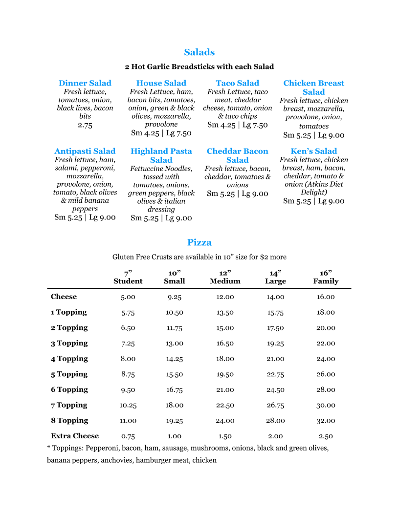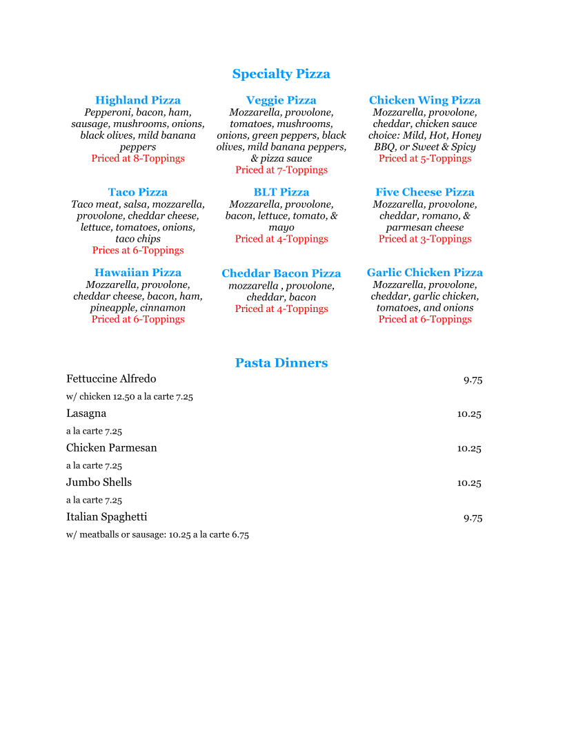 Highland Pizza & Ice Cream Menu (2025 Update)