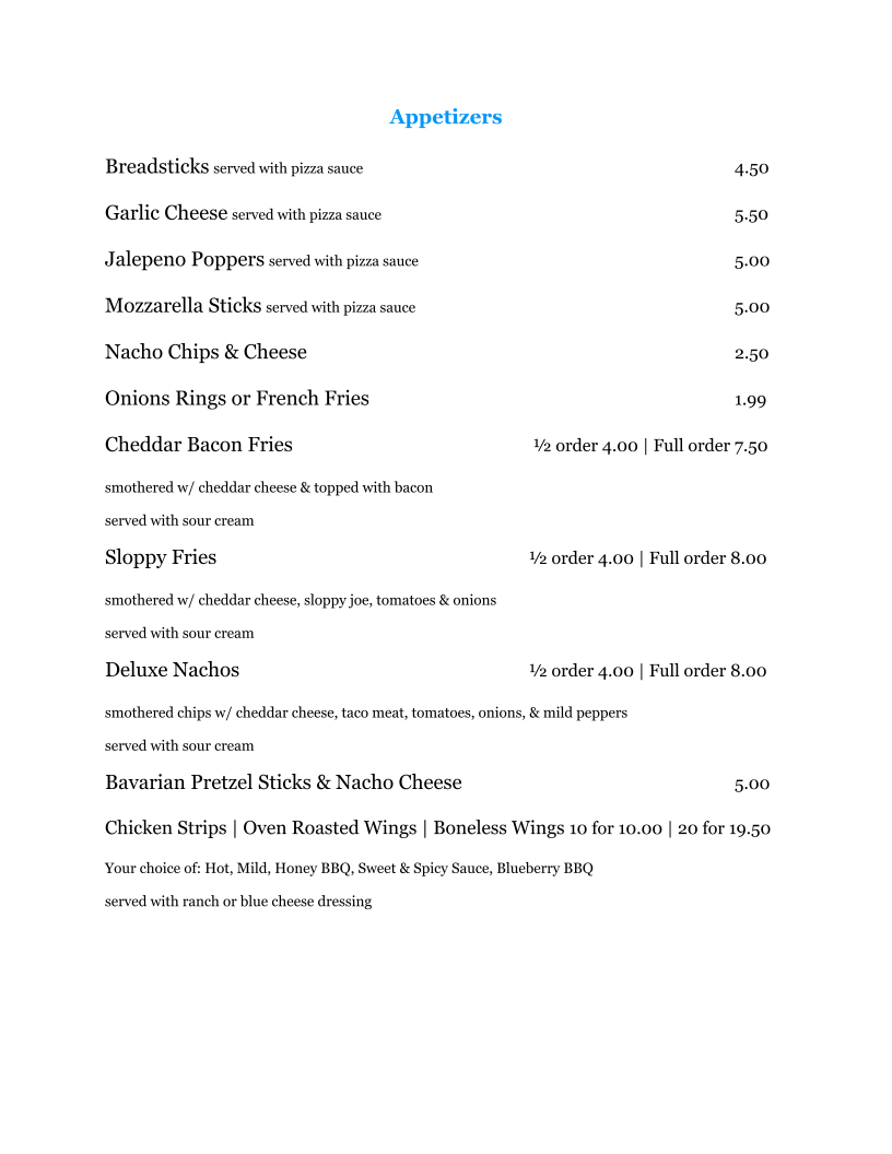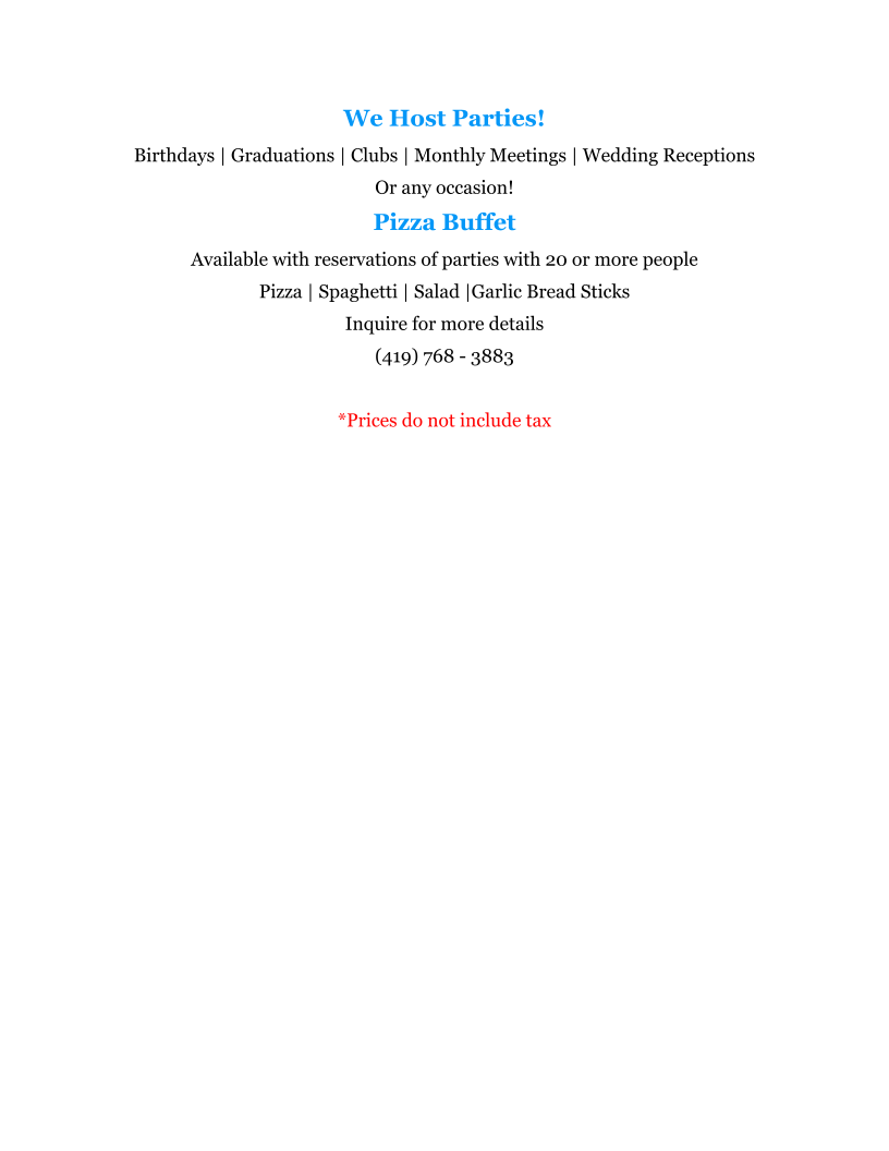 Pizza Spaghetti Salad Soup Garlic Bread Sticks Cinnamon Bread Sticks
